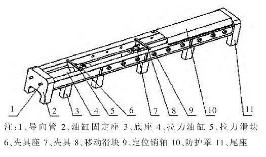 2)機架采用箱式框架焊接,增加拉力機強度,與地基采用螺栓連接,起到拉力油缸固定作(zuò)用。